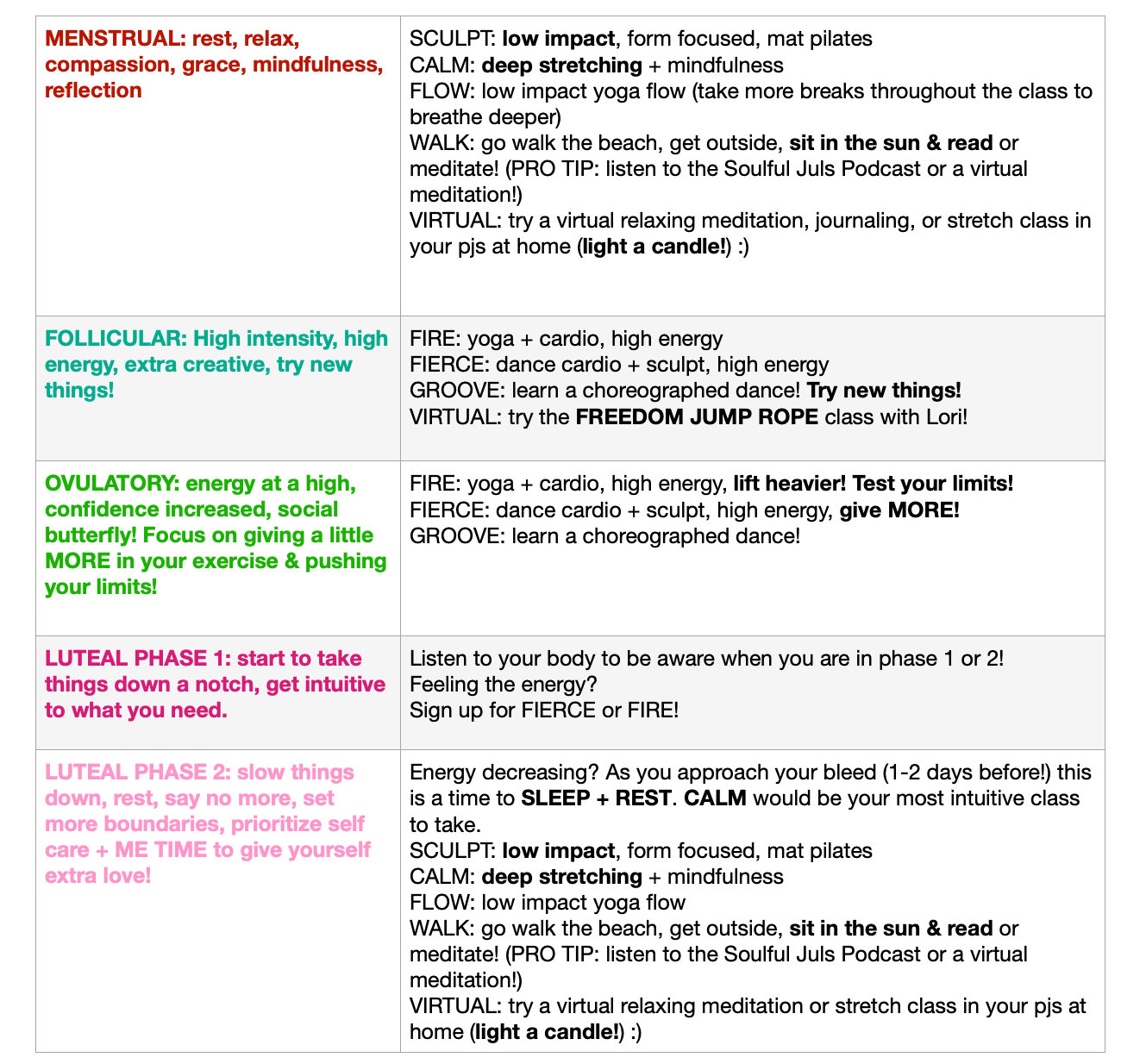 step 3: Sync your EXERCISE routine w/ your cycle!